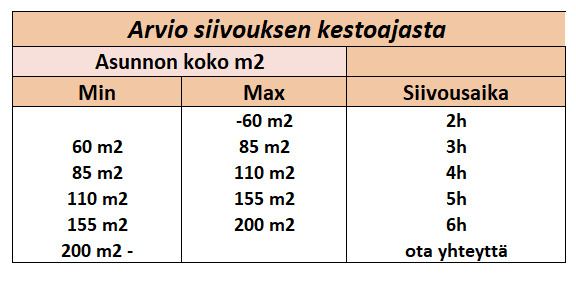- Joustavat aikataulut, siivous silloin, kun sinulle sopii